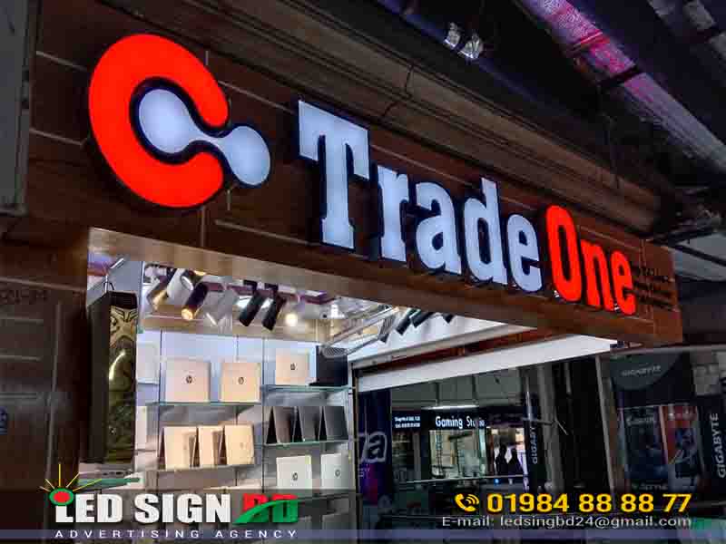 We have made the Acrylic Lighting Shop Name Plate for Trade One laptop showroom outdoor advertising and branding. laptop showroom led sign board. laptop showroom led sign board price. laptop showroom led sign board near me. best laptop showroom led sign board. led sign board price. led letter sign board. led sign bd ltd. sign board price in bd. acrylic sign board price in bangladesh.
