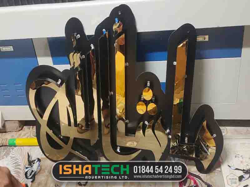 • Acrylic 3D SS Golden Letter Signage: Combine the depth of 3D letters acrylic with the sheen of golden SS for a stunning multi-dimensional effect. We are your trusted Acrylic 3D SS Golden Letter Signage Factory in Bangladesh.