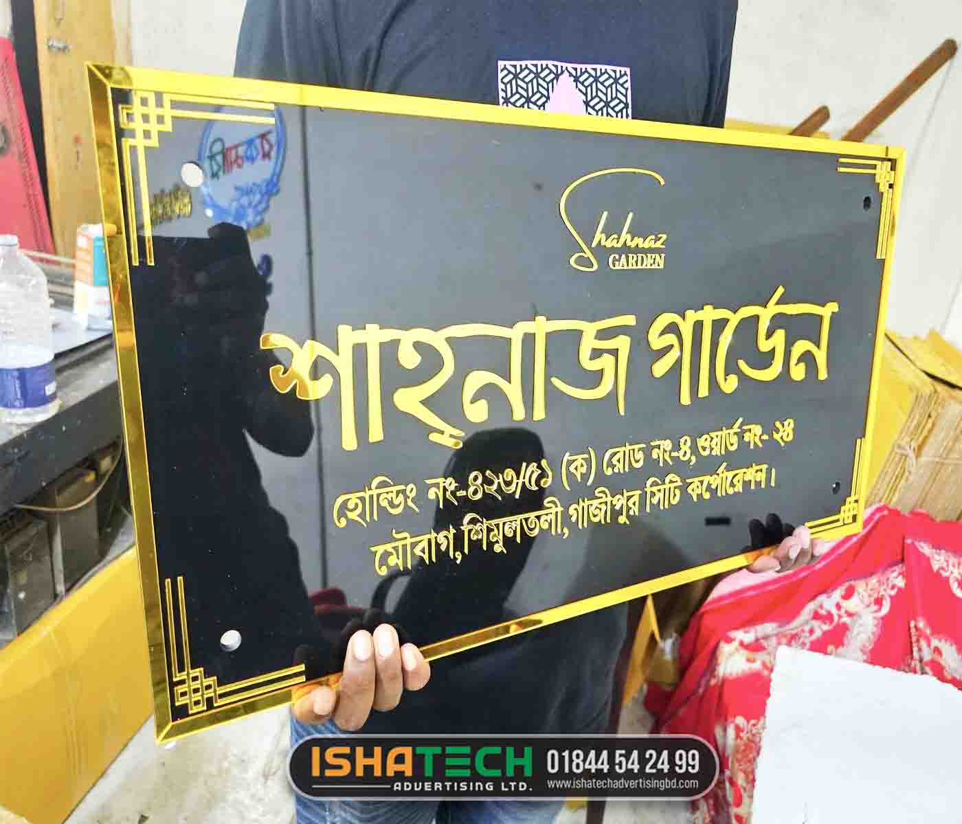 Custom Holding Name Plate Gazipur. Name Plate Signage Agencies in Dhaka, Bangladesh. Shanaj Garden hoarding acrylic nameplate. Name Plate Design and Printing Company in Bangladesh. Top Name Plate Manufacturers in Ghazipur. Name Plate Designs – House and Office Signage. Personalized Name Plate Designs for your Home. City corporation reception nameplate.