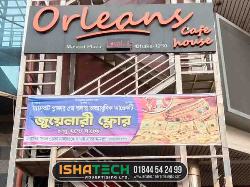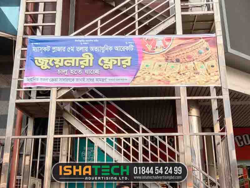 For effective outdoor marketing, vinyl (PVC) is the most widely used material due to its heavy-duty, tear-resistant, and weatherproof properties. If your banner will be in a high-wind area like a fence or scaffold, mesh banners are preferred because their perforated structure allows air to pass through, reducing the risk of damage. Get Outdoor Marketing Banner Print and design service from LED Sign BD Ltd.