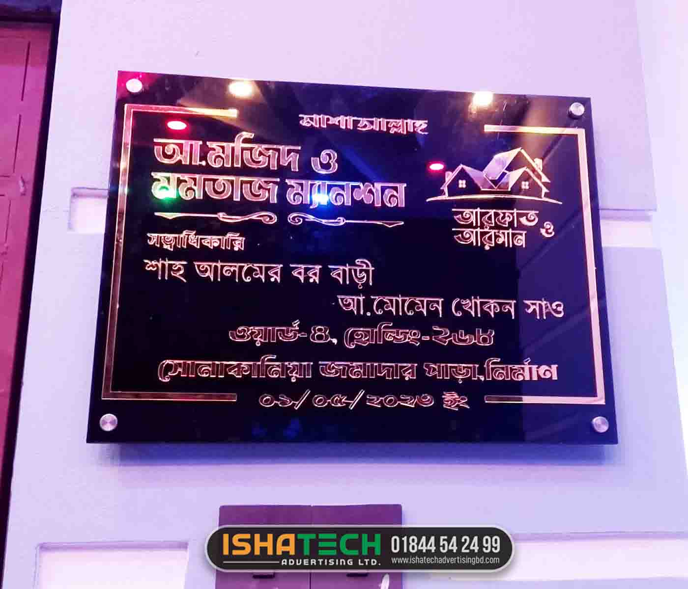 A plastic mansion name plate is an affordable and elegant way to display the name of a home or mansion. For a house like Jomadar Bari, a plastic nameplate offers durability, customization, and a clean modern look.